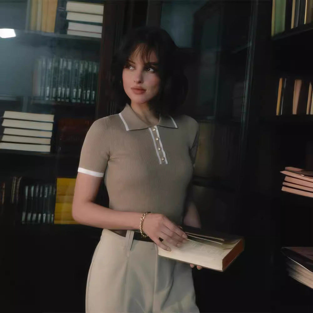 Erleben Sie die perfekte Mischung aus Raffinesse und Komfort mit unserer Knopfdetaillierten Strickbluse. Die einzigartigen Knopfdetails verleihen einen Hauch klassischen Charmes, während der scharfe Kragen und der Ärmelbesatz einen eleganten Abschluss bieten. Diese Bluse wurde für vielseitiges Styling entworfen und ist eine zeitlose Ergänzung für Ihre schicke Alltagsgarderobe.