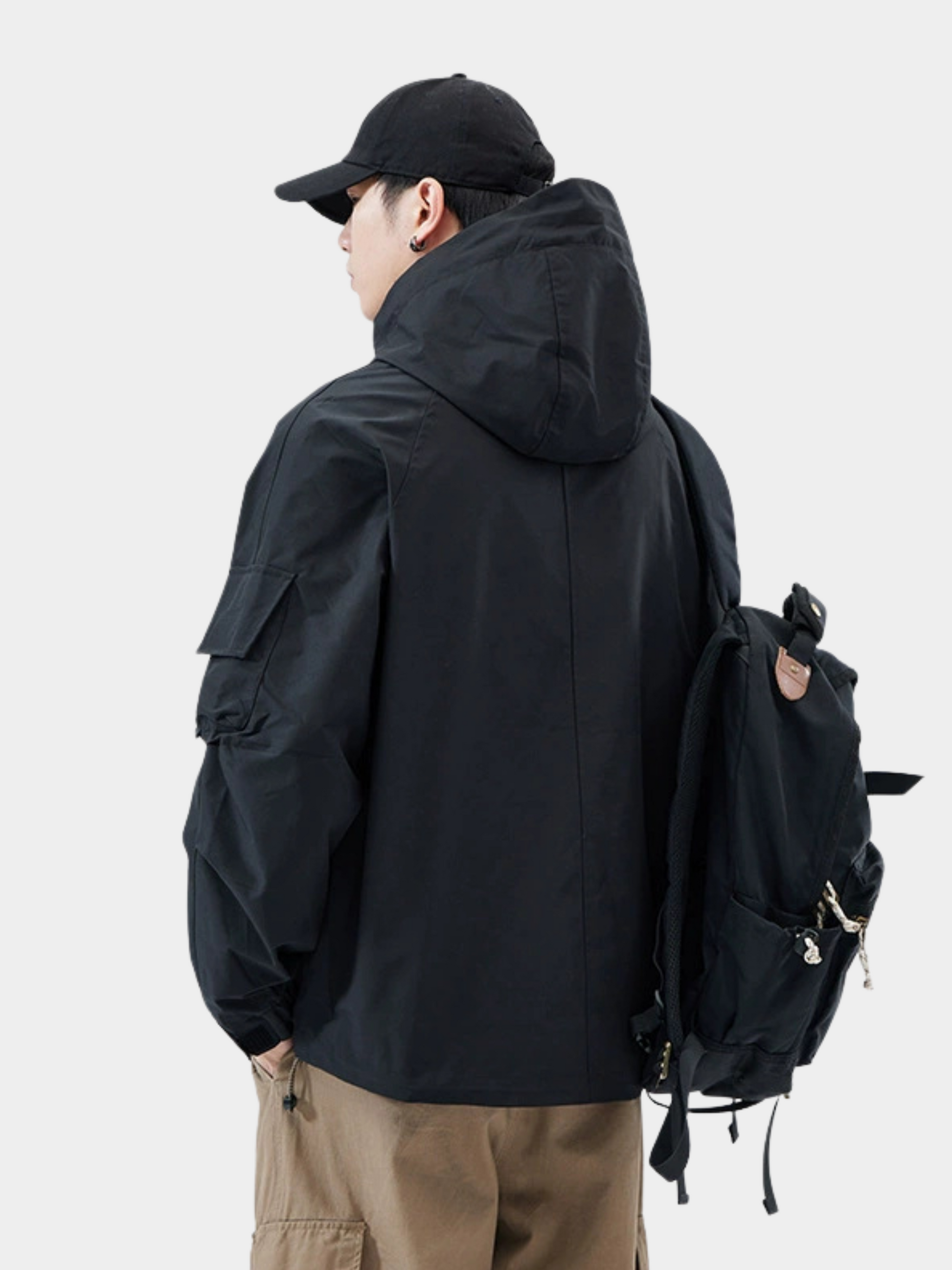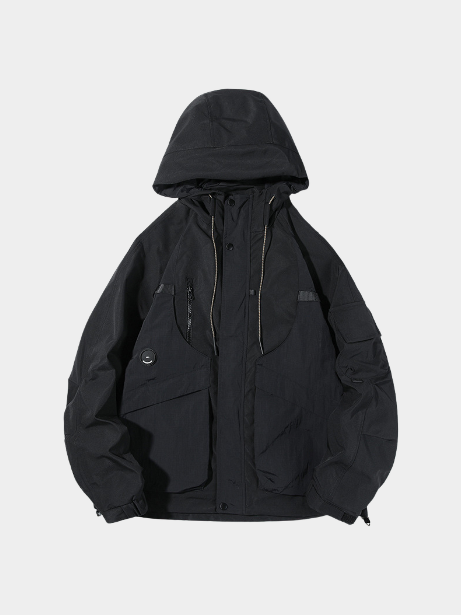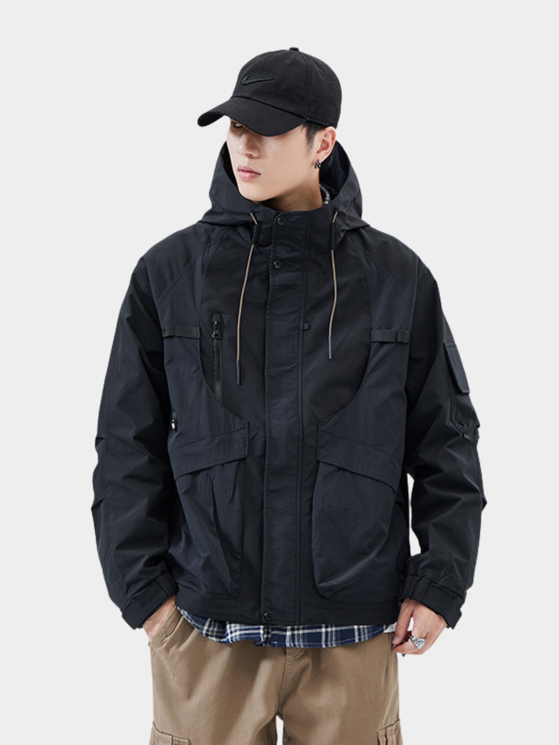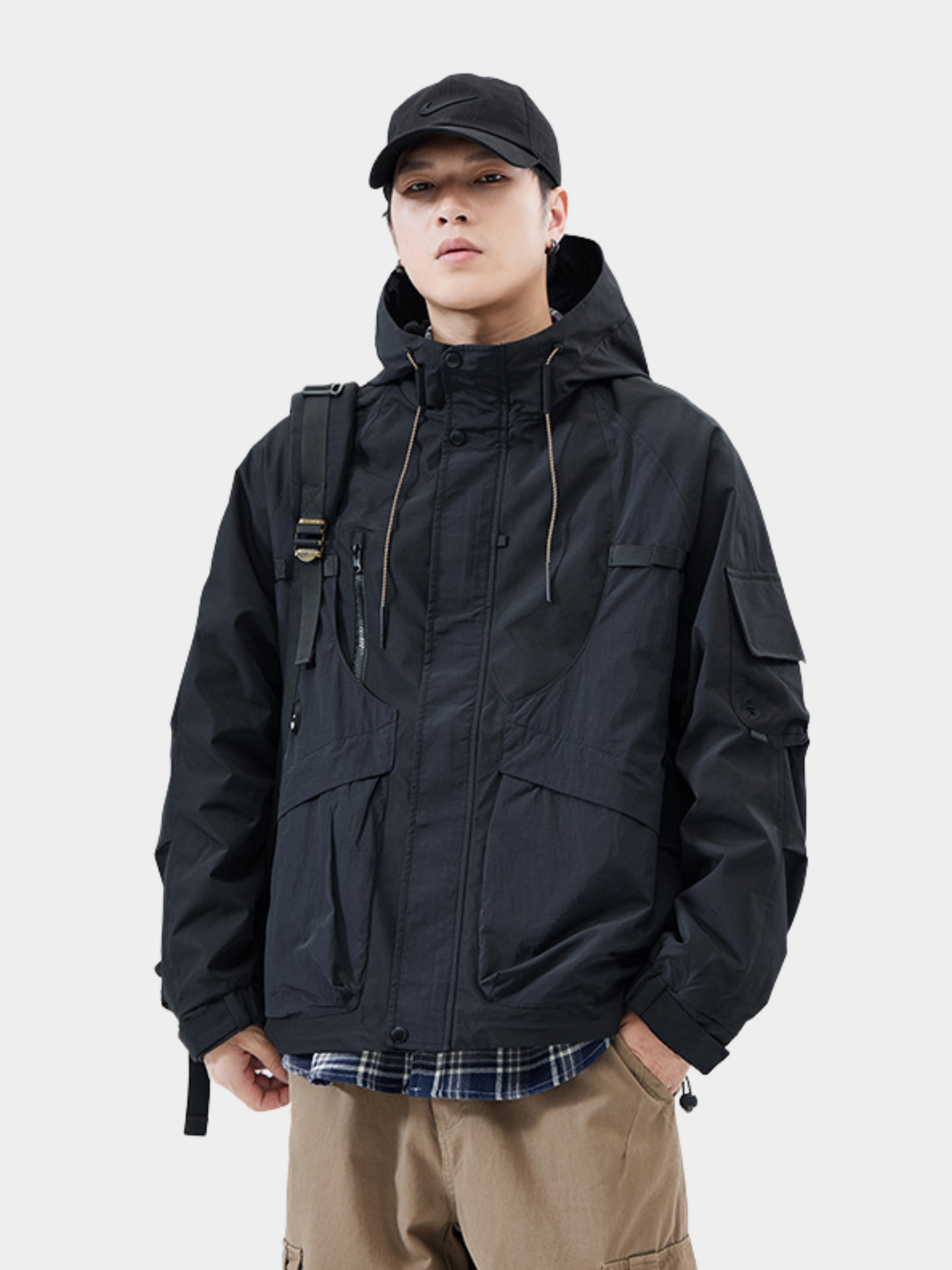 Durable utility jacket crafted from 100% nylon with multi-pocket design and triple protection against wind, water, and stains. Built for urban exploration and outdoor performance.
