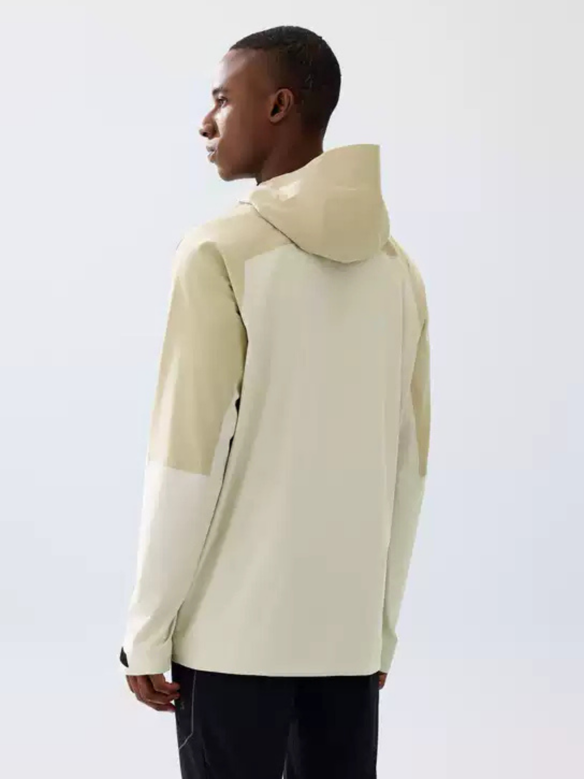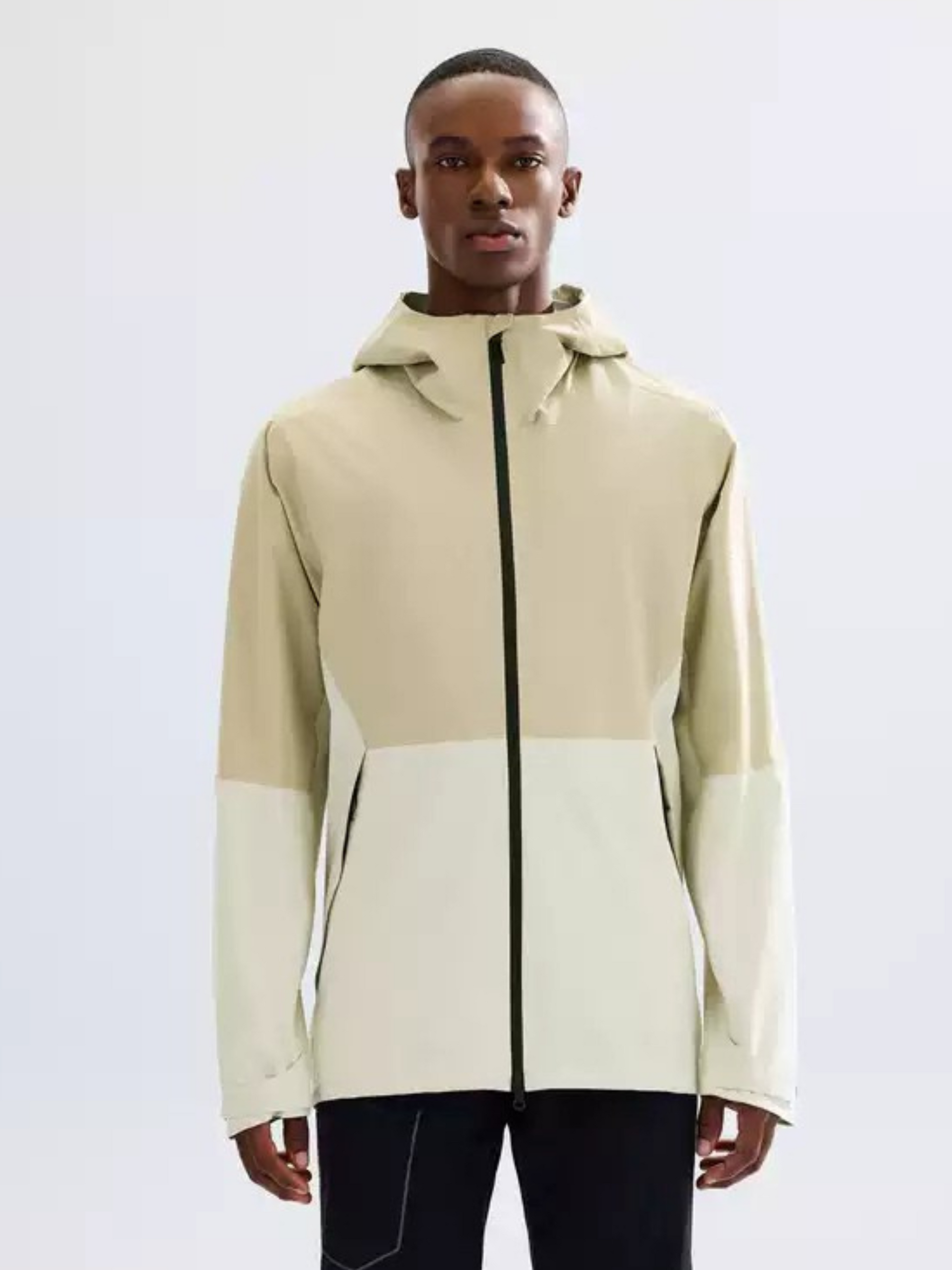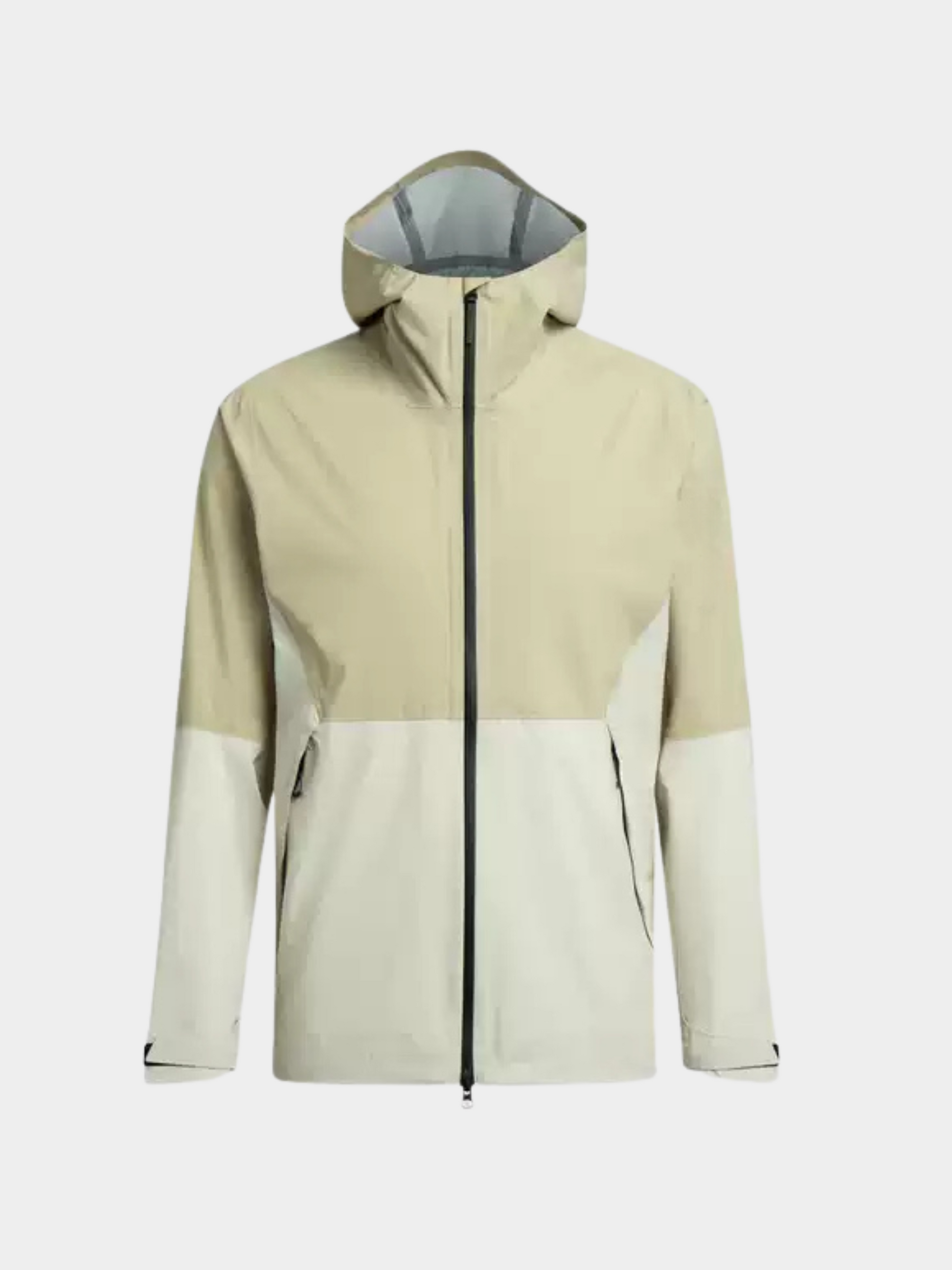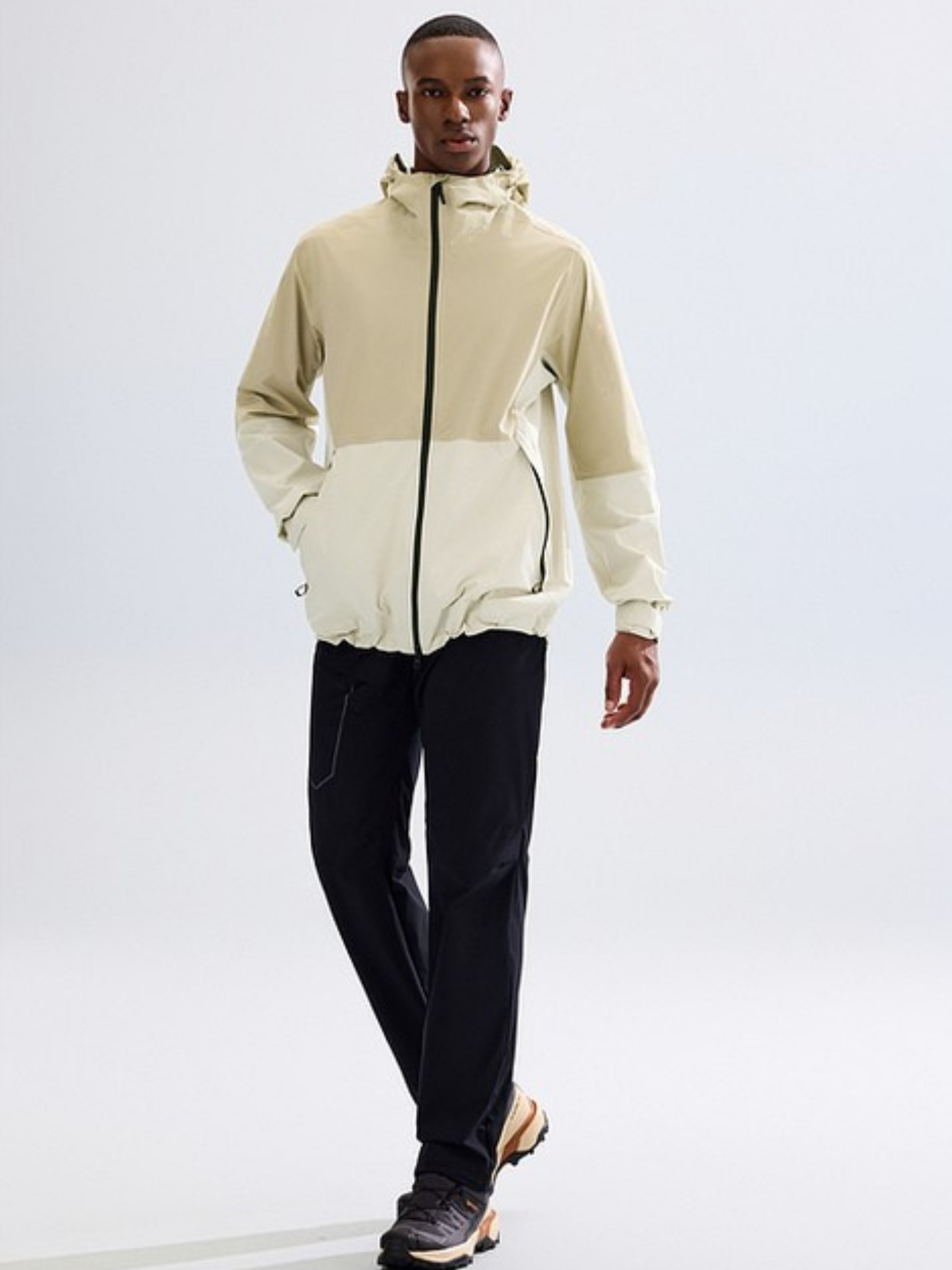 Durable colorblock jacket combining waterproof, windproof, and breathable performance. Designed for outdoor activities to withstand changing weather while keeping you dry and comfortable.