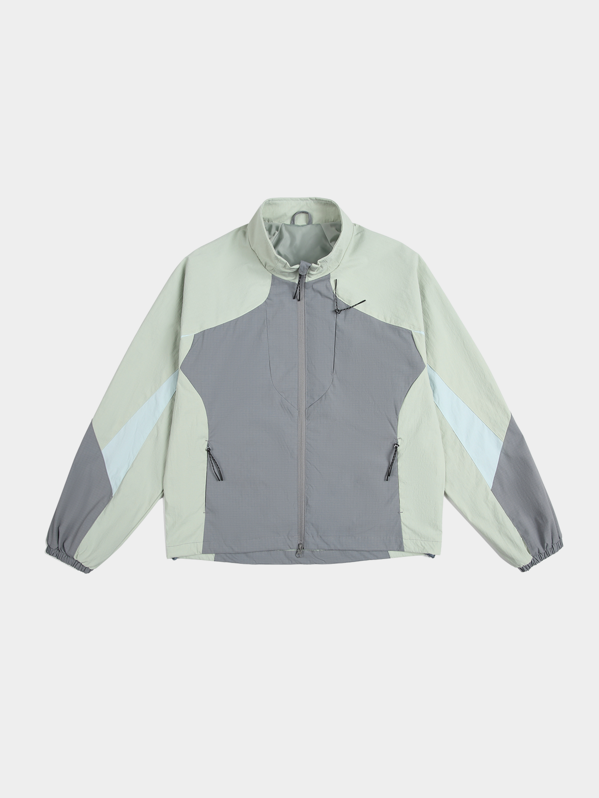 This outdoor-ready jacket combines a sleek stand-collar design with durable water-repellent fabric. Featuring a structured cut and colorblock paneling, it delivers both weather protection and modern streetwear appeal.