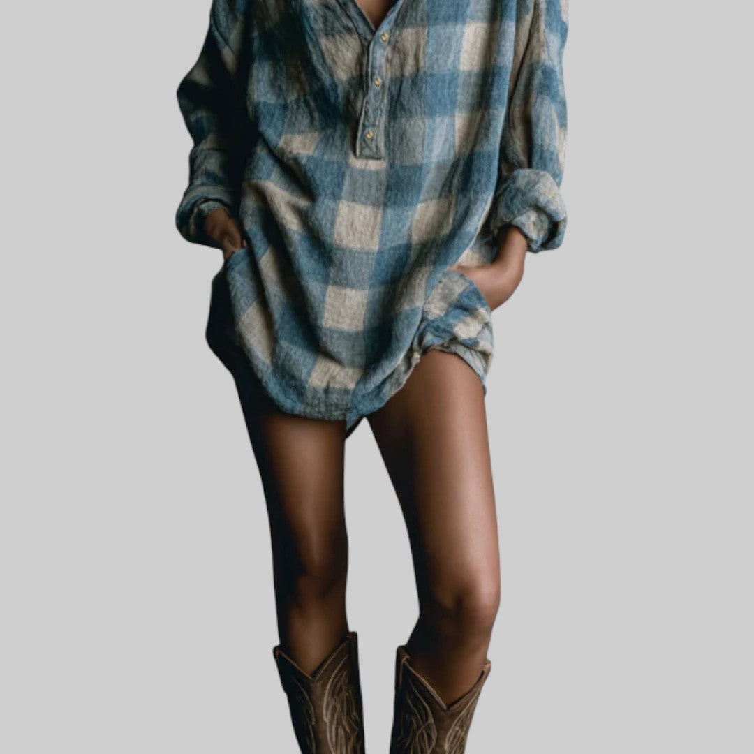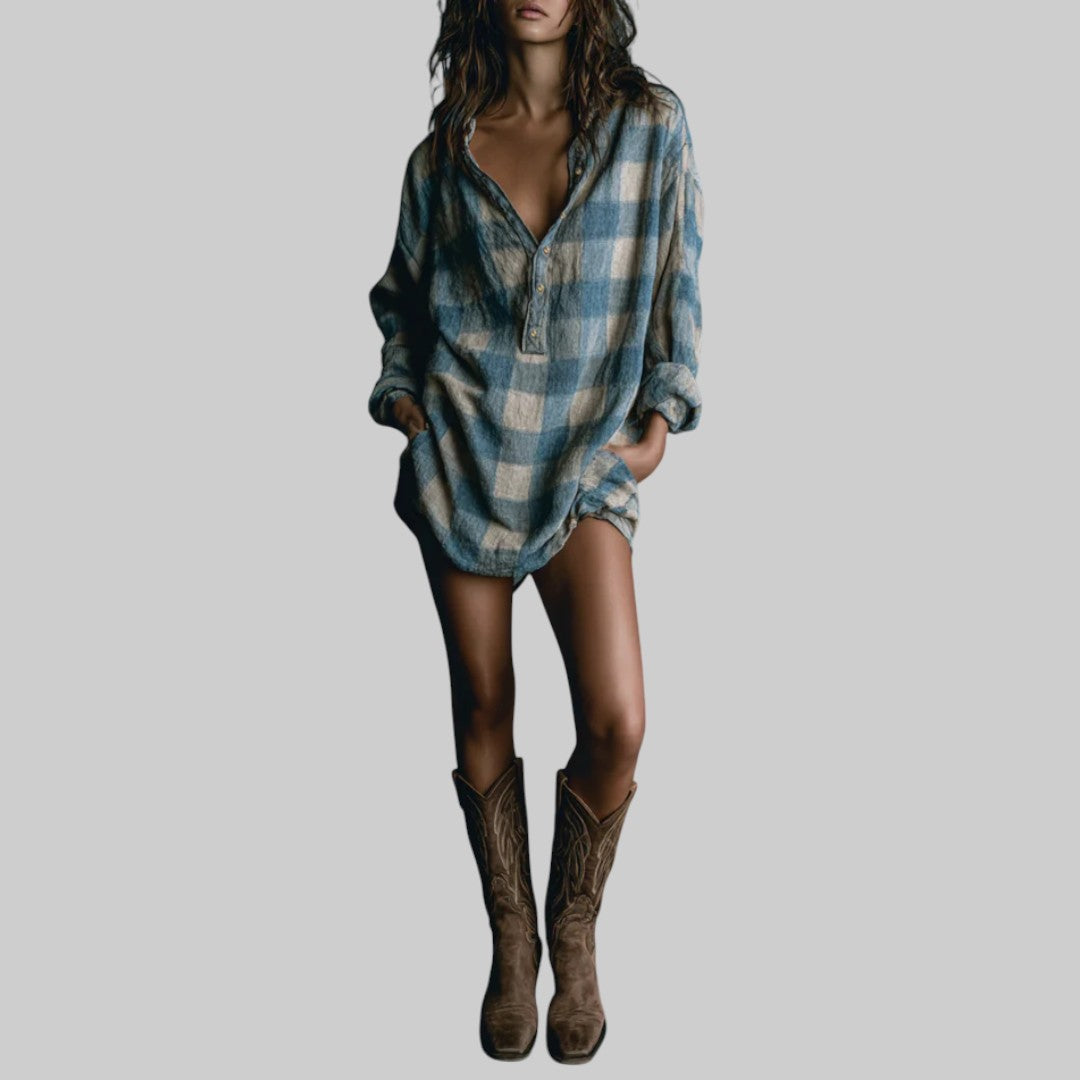 Unser beliebtes Elena Kleid kombiniert lässigen Komfort mit einem zeitlosen Karomuster und macht es zur idealen Wahl für ungezwungene Alltags-Eleganz. Dieser Bestseller hält Sie stilvoll und bequem von informellen Brunches bis zu gemütlichen Herbstspaziergängen.