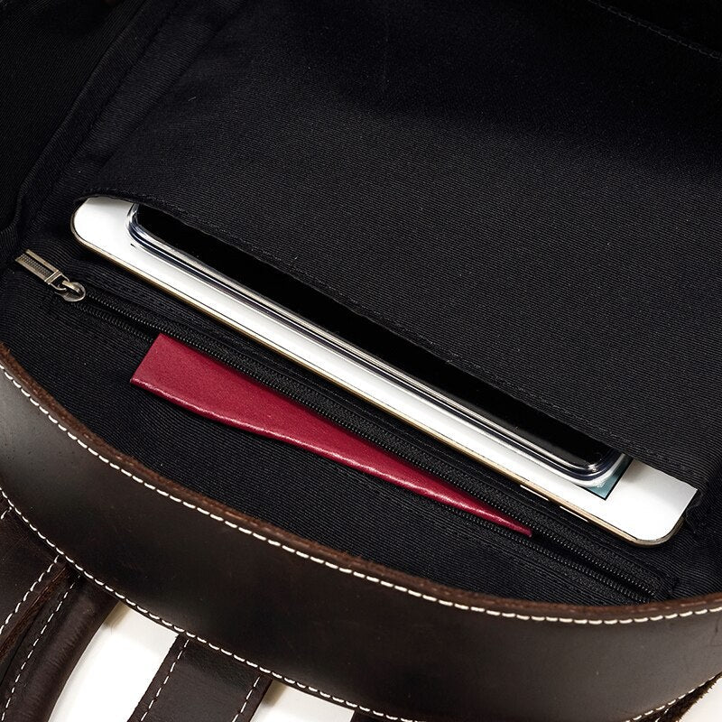 - Die Rückseite der Tasche hat einen weichen Ledergriff, der praktisch zum Anheben der Tasche ist.