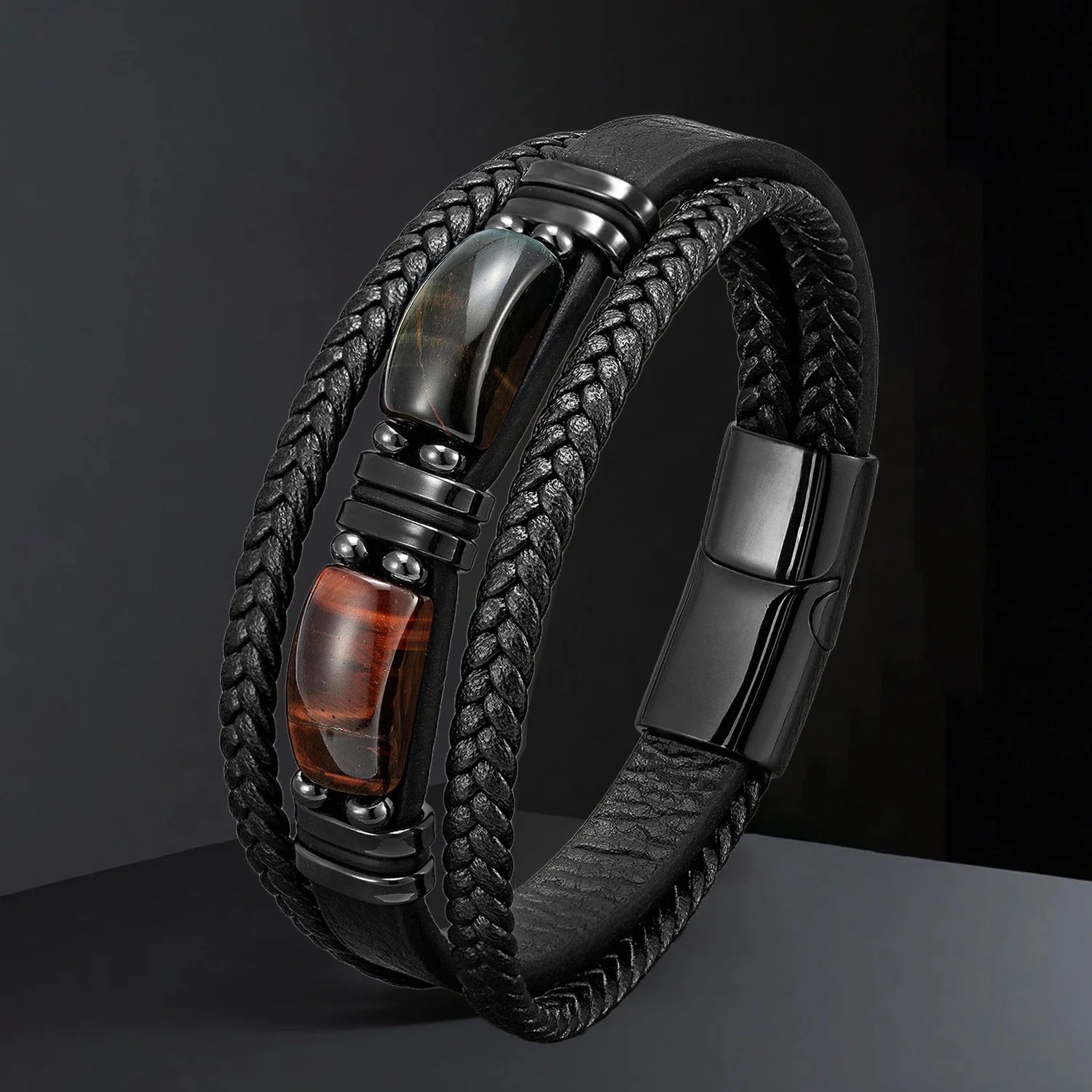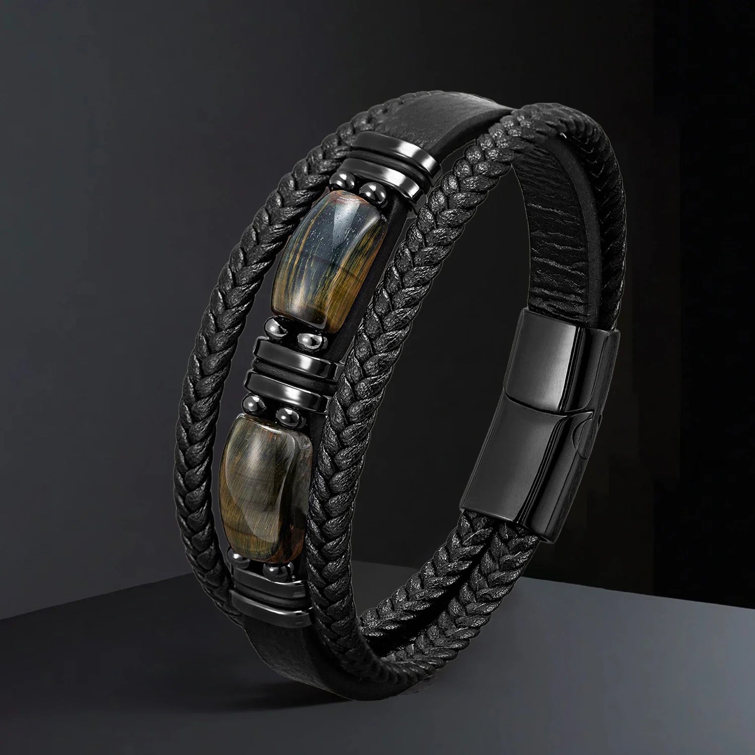 Bring natural charm and effortless style to your wrist with the Lussonia Stone & Leather Boho Bracelet. This handmade piece blends earthy stone beads with genuine leather and stainless steel accents, creating a bohemian accessory that’s both trendy and timeless. The geometric pattern and magnetic clasp add a touch of modern flair, while the adjustable rope chain ensures a comfortable fit for everyday wear.