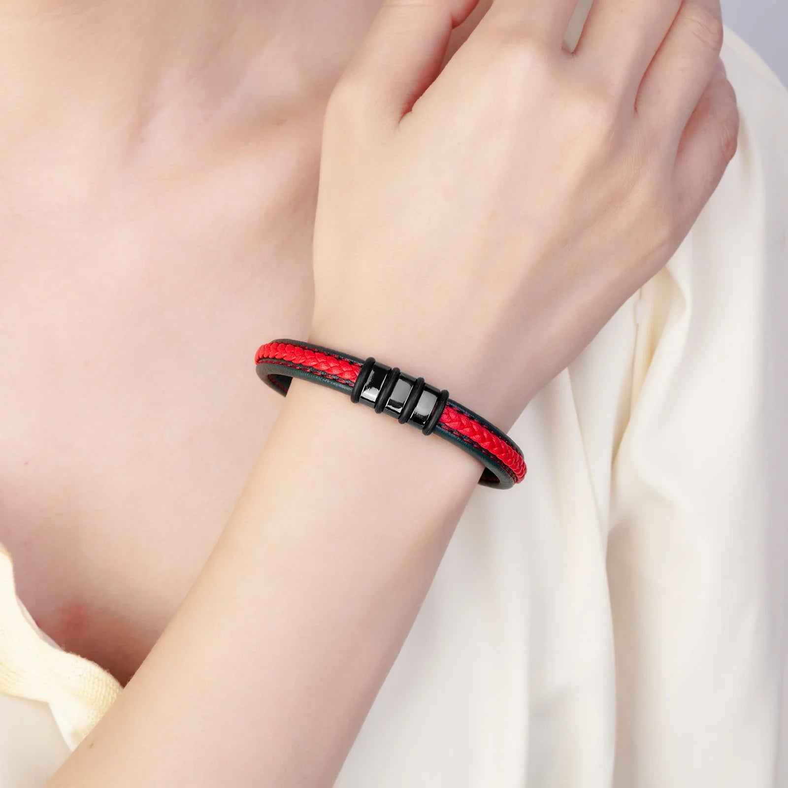 Celebrate love and connection with the Lutetia Interlocking Couple Bracelet — a timeless symbol of unity and style. Made from premium 316L stainless steel combined with durable leather rope, this bracelet is designed for couples who appreciate meaningful accessories with a modern touch. Its sleek round interlocking design represents an unbreakable bond, while the magnetic clasp makes it easy and secure to wear. Perfect for daily use, special occasions, or as a thoughtful gift for someone you love.