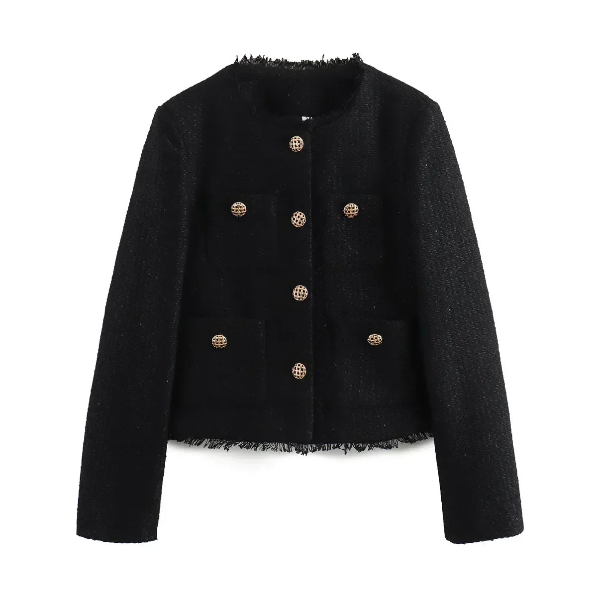 Lassen Sie sich von unserer Tweed-Chic- und Zeitlosen Jacke von Mystique & Co™ verzaubern. ✨ Hergestellt aus weichem Tweed mit strukturiertem Fall, vereint sie Komfort und Raffinesse mit natürlicher Eleganz. Ihr kurzer Schnitt, der rundhals und die dekorativen Knöpfe formen eine moderne Silhouette, die sich für alle Anlässe eignet — vom Kaffeeklatsch mit Freundinnen bis zu nächtlichen Ausflügen in der Stadt. 😍