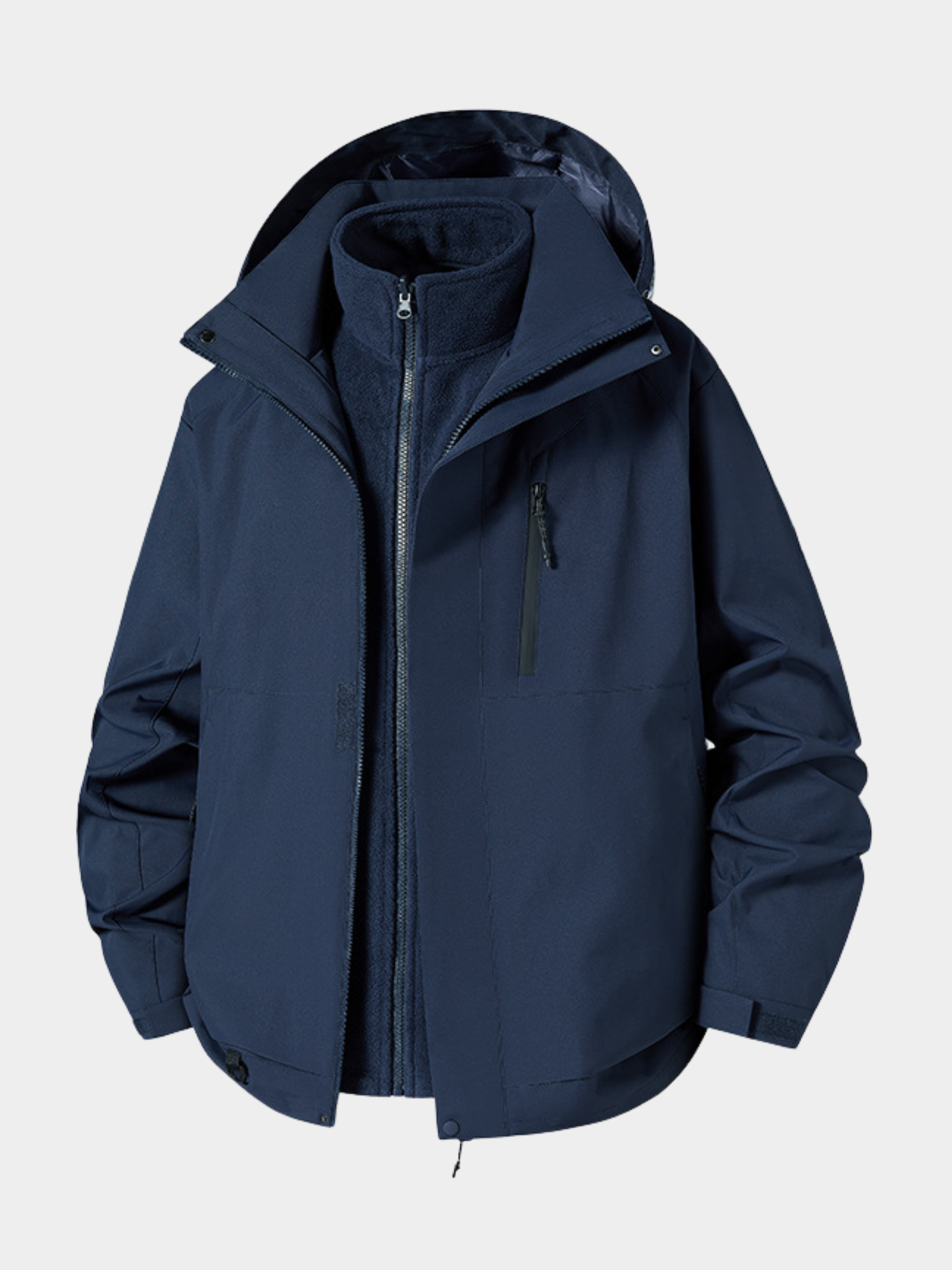 Eine funktionale 3-in-1-Jacke aus 100 % Polyester, die wasserdichte, winddichte und abriebfeste Eigenschaften vereint – für vielseitigen Einsatz im Freien und in der Stadt.